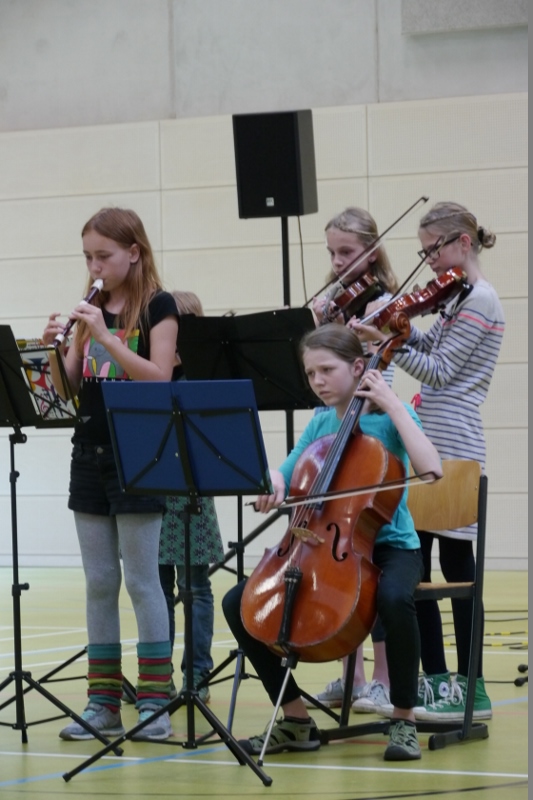 Unser noch junges Orchester unter der Leitung von Frau Wicklein setzte den musikalischen Auftakt mit trickreichen Variationen und klanglichen Finessen. Das Publikum honorierte mit aufmerksamer Stille und lautem Applaus die Leistungen jedes Einzelnen. Wir dürfen bei so viel Potential gespannt sein, in welche Klangwelten uns das Orchester in Zukunft entführen wird.
