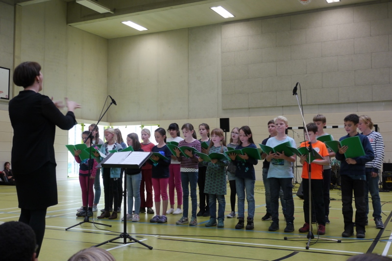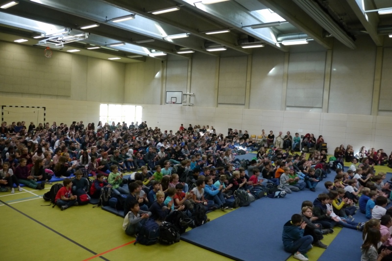 Das Jubiläumskonzert für alle Schüler und Lehrer in der Turnhalle