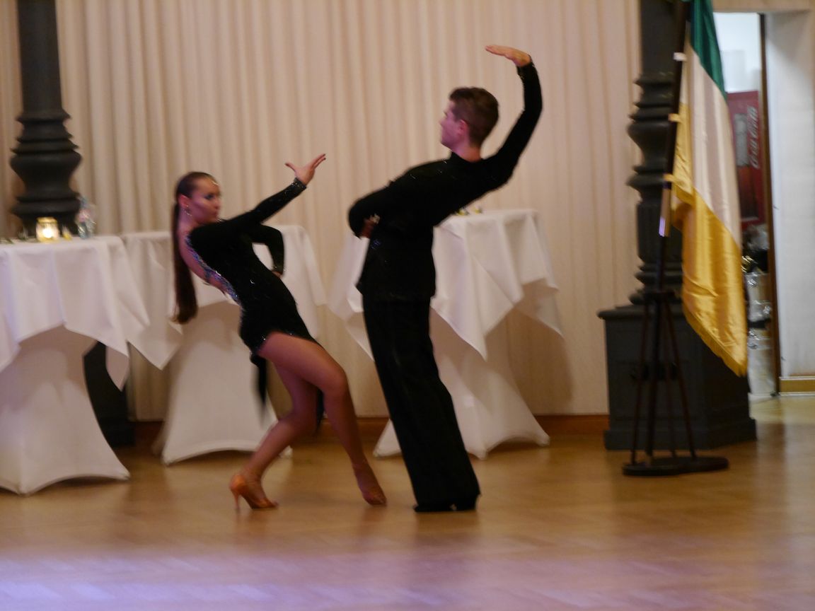 Eine Erholungspause für uns schaffte der Auftritt eines Showtanzpaares mit lateinamerikanischen Tänzen voller Temperament und Leidenschaft. Diese Eigenschaften hat das Paar offenbar schon oft bei seinen Trainings ausgenutzt. Den zügigen und raumfüllenden Schrittfolgen haben wir gern zugesehen. Doch wir machen uns für den heutigen Abend keine Hoffnung, etwas in dieser Art selbst zu schaffen.