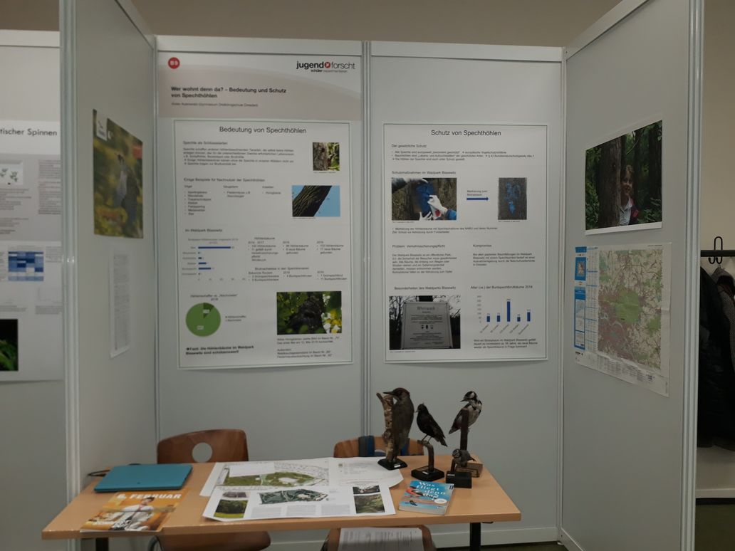 Neben Physik, Chemie, Geo- und Raumwissenschaften, Arbeitswelt, Technik, Informatik/ Mathematik ist die Biologie eines der Teilgebiete des Wettbewerbs. In letzterem startete ich mit meinem Projekt „Wer wohnt denn da? – Bedeutung und Schutz von Spechthöhlen“ für unsere Dreikönigschule.