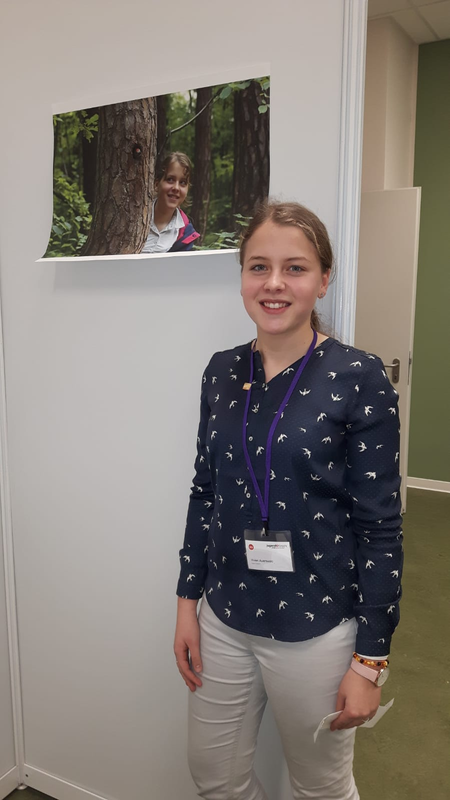 Von 9-15 Uhr ging die Jury durch die einzelnen Räume auf Bewertungsrunde. Jeder Teilnehmer bekam 15 Minuten Zeit, um sein Projekt in einem kurzen Vortrag vorzustellen. Danach hat die Jury Fragen gestellt und mit dem Forscher diskutiert. Ich war sehr aufgeregt, habe mich aber gefreut, als die Jury an meinem Stand war. Ungefähr 20 min lang habe ich mein Projekt und die Ergebnisse vorgestellt. Sie haben interessiert zugehört und angeregt von ihren Specht-Beobachtungen im eigenen Garten erzählt. Die Atmosphäre war sehr schön und locker. Es war eine großartige Erfahrung, die ich nie wieder vergessen werde.
