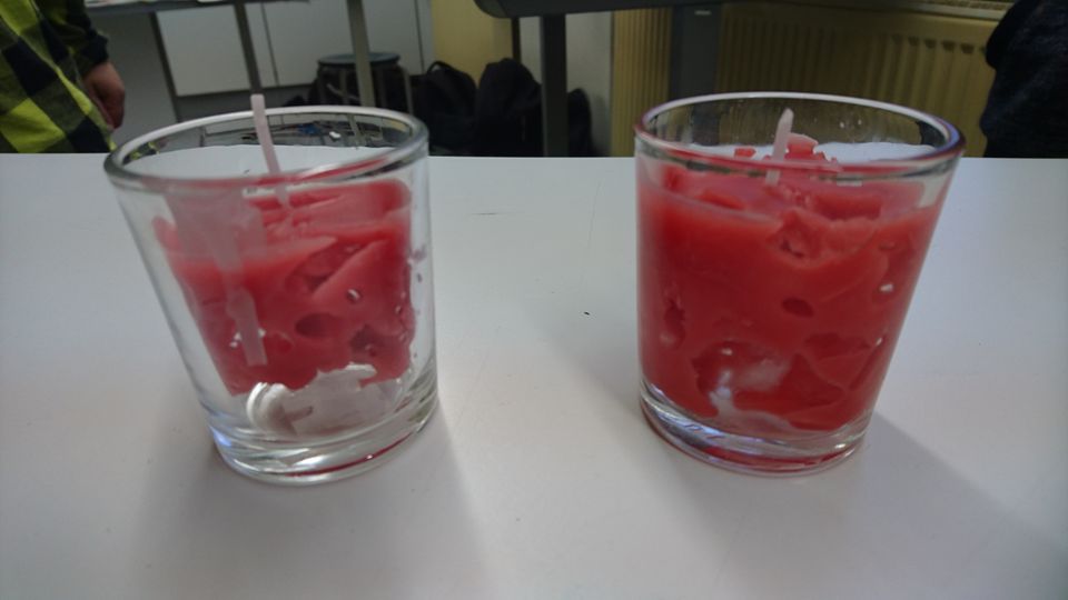 Es war interessant, was für Formen bei den Kerzen rauskamen. Jede Kerze wurde anders und wenn man sie anzündet, leuchten sie schön. Wir sind froh, dass wir jetzt auch gleich ein Geschenk zum Weihnachtsfest haben.