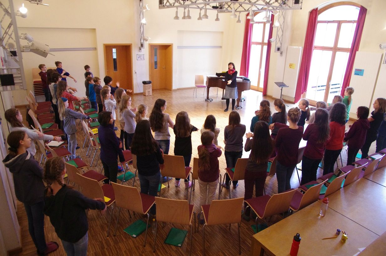 Am Mittwochmorgen kamen die Fünft- und Sechstklässler dazu, multicolor und microcolor probten nun vereint. In diesem Jahr war dies besonders wichtig, denn viele gemeinsame Stücke stehen für das Weihnachtskonzert auf dem Programm.