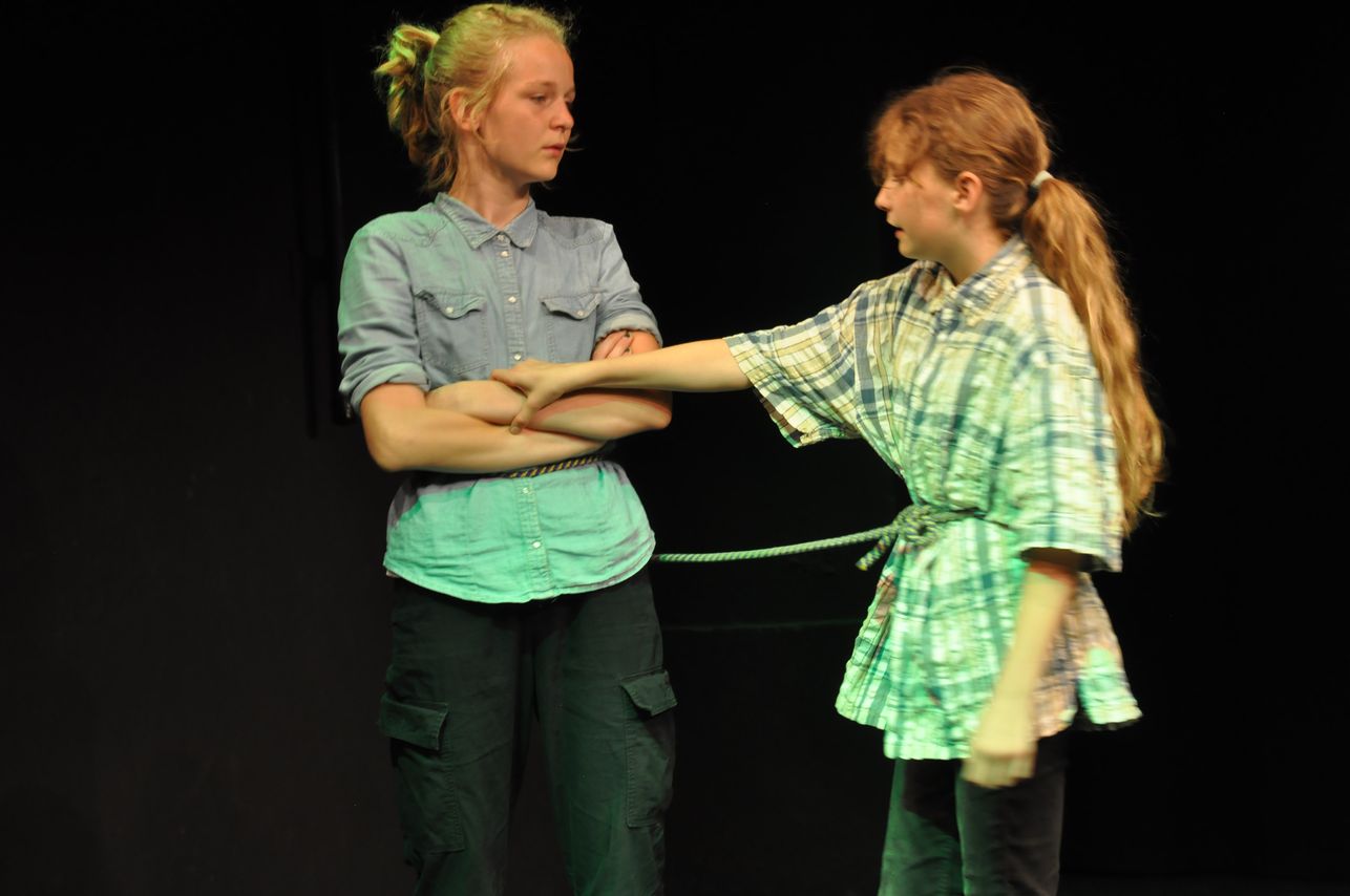 In ihrem Stück „Der blöde Zwilling“ von Christof Kämmerer nehmen uns die jungen Darsteller und Darstellerinnen mit auf die Reise von Paul. Dieser entschließt, sich trotz aller Bedenken seiner Mutter, loszuziehen, um die entführte Prinzessin zu finden. Einen Haken hat die Sache nur: aus Angst schickt ihm die Mutter einen Gefährten mit, der dem Jungen immer genau das ins Ohr flüstern soll, was seine Mutter ihm raten würde – den blöden Zwilling. Mit der Hilfe von einigen neuen Freunden und viel Mut gelingt es unserem Hauptdarsteller jedoch schließlich, die Prinzessin zu befreien und noch viel wichtiger, seinen Schatten loszuwerden.