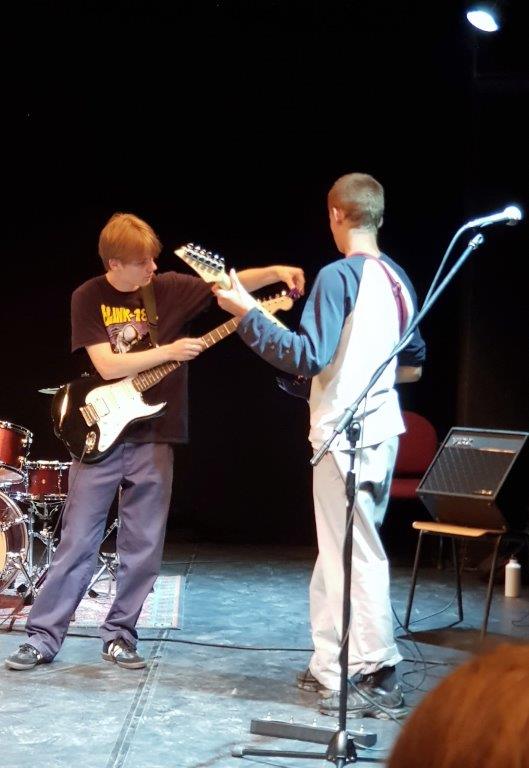 Der Techniker, Gregor Skowronek, dreht die Beleuchtungseffekte auf. Jetzt baut sich die Schulband auf, auch auferstanden bzw. durchgehalten – nach drei Jahren! wieder live - und zusammen im ‚pt‘!