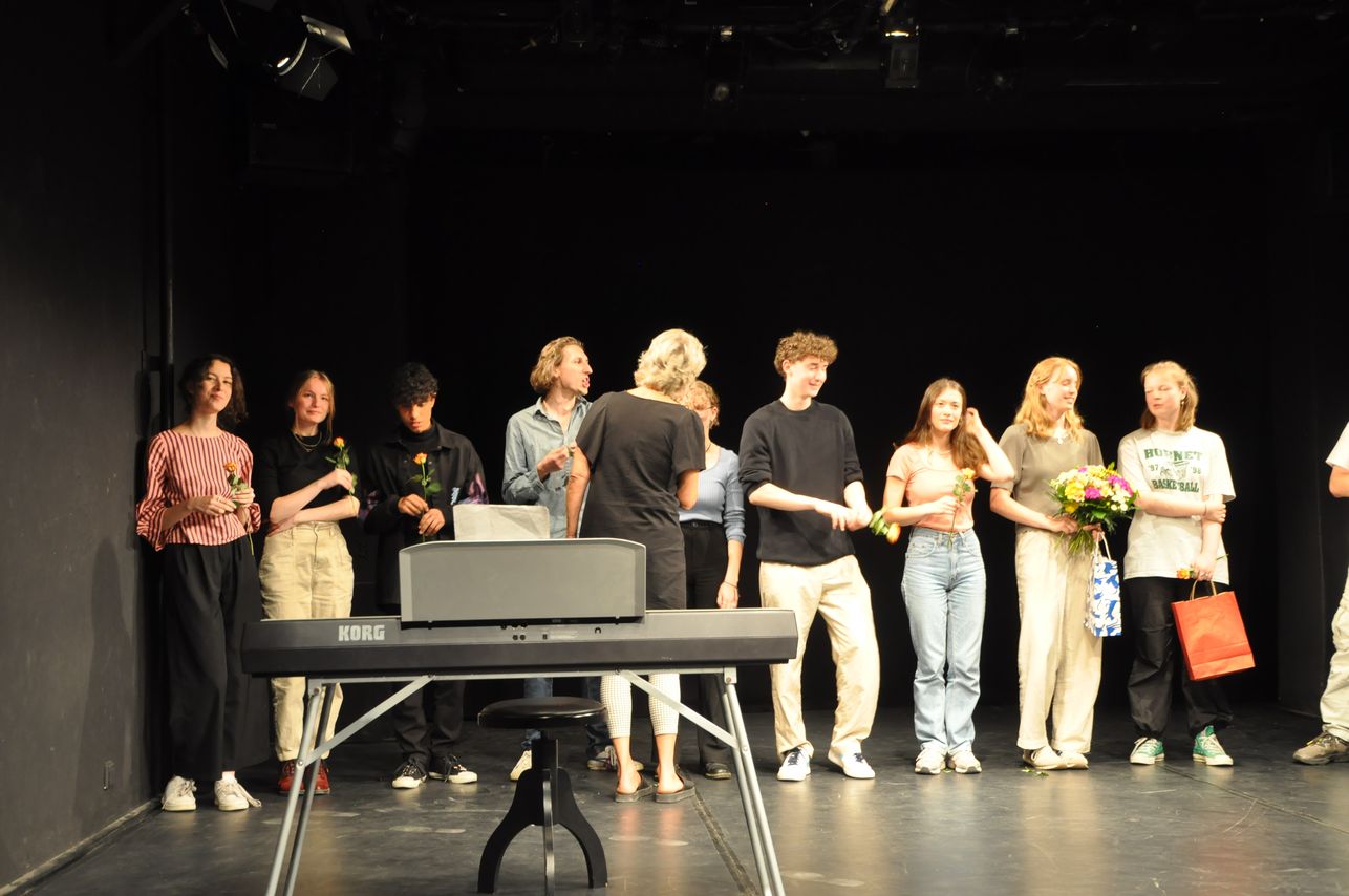 Beeindruckend, mit welcher Intensität und mit welcher Qualität alle Darsteller agiert haben! Begeistert und ein wenig wehmütig schaut man beim großen Schlussapplaus auf alle Beteiligten. Woche für Woche hat Theaterleiterin Ina Kwiatkowski die Proben geleitet, immer wieder neu inspiriert und motiviert. Wer die Stücke dieser Gruppe über all die Jahre verfolgt hat, konnte stets die Weiterentwicklung bewundern. Bei diesem Abschlussstück aber konnte man kaum noch glauben, dass es sich um ein Schülerstück handelt.