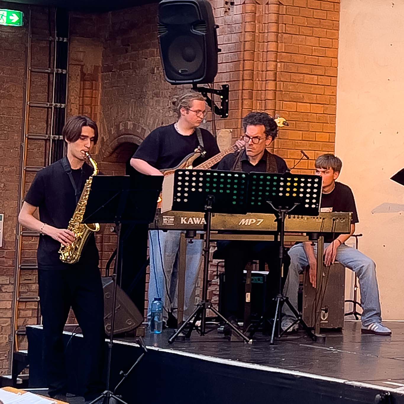 Unterstützt durch E-Bass, Cajon, Saxophon und Klavier wurde das Publikum auf eine musikalisch-emotionale Achterbahnfahrt mitgenommen: So blieb kaum ein Arm ohne Gänsehaut bei Titeln wie „Die Welt braucht Lieder“ oder Michael Jacksons „Earth Song“.