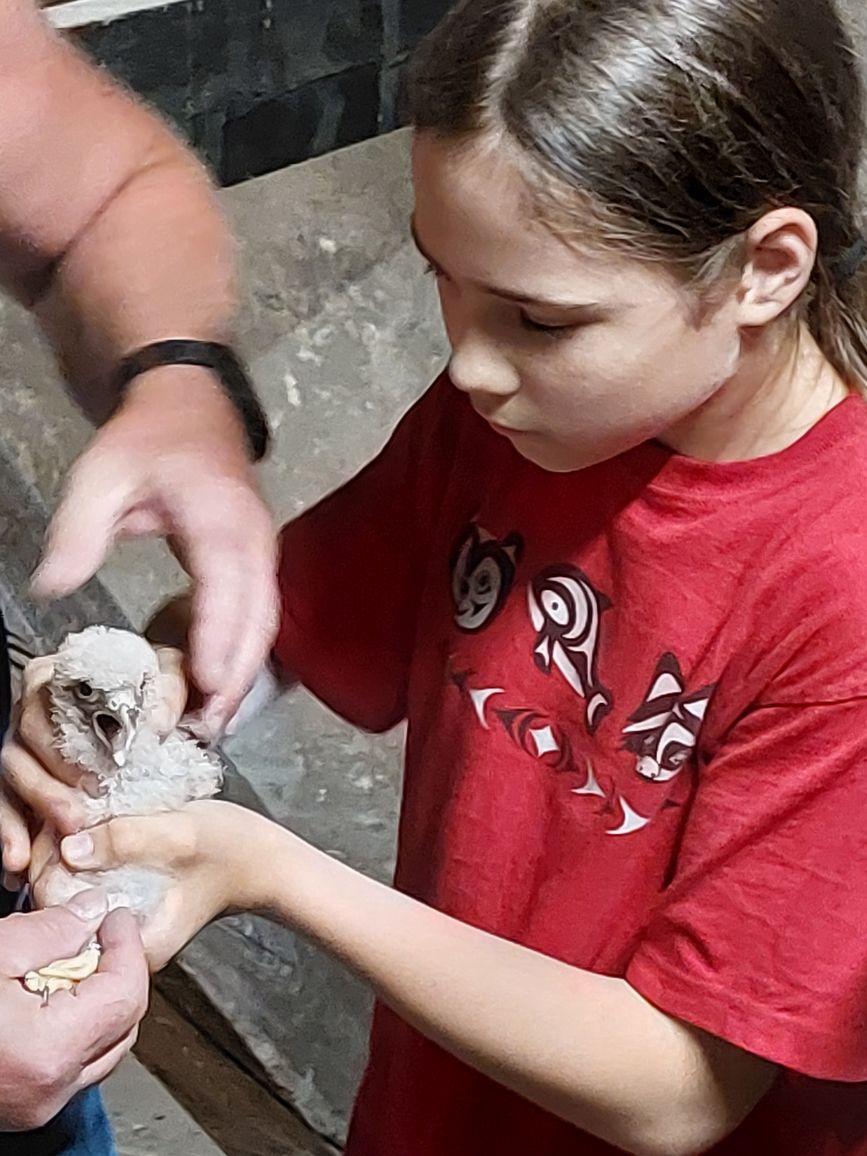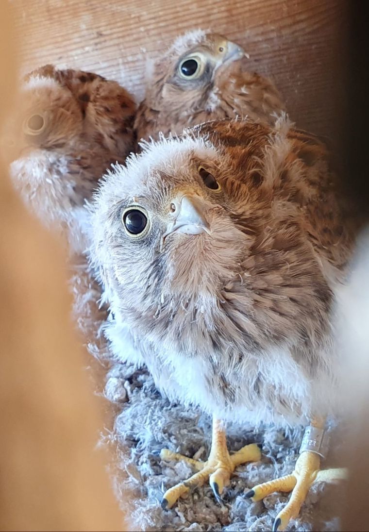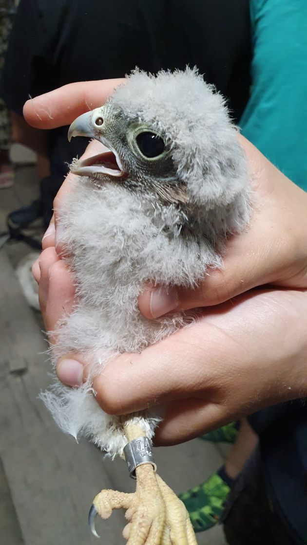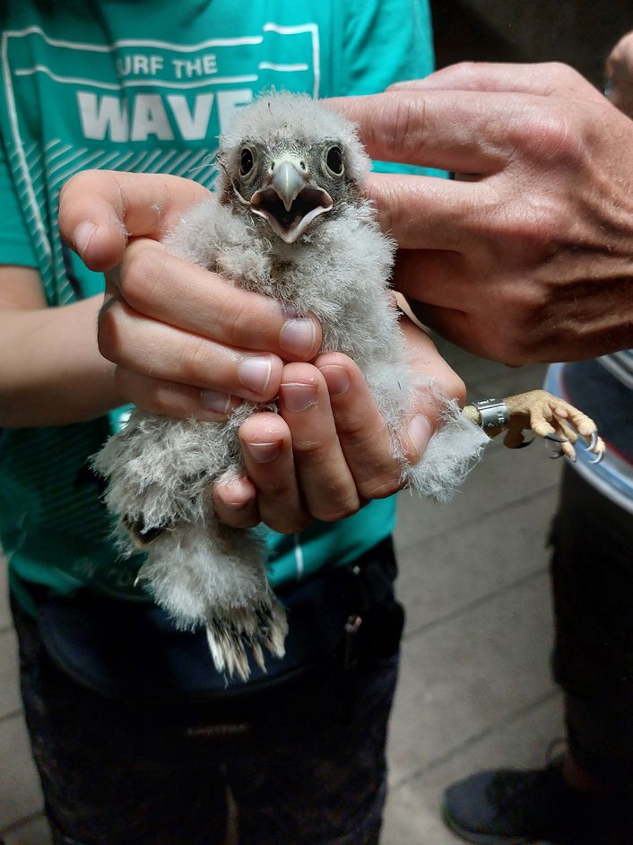 Da der Beringer dieses Jahr schon viele Turmfalken-Küken in ganz Dresden beringt hat, konnte er uns berichten, dass sie an unserer Schule mit zu den jüngsten gehören.