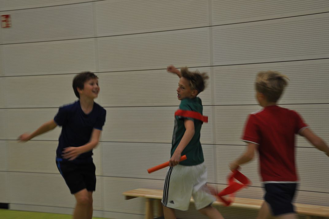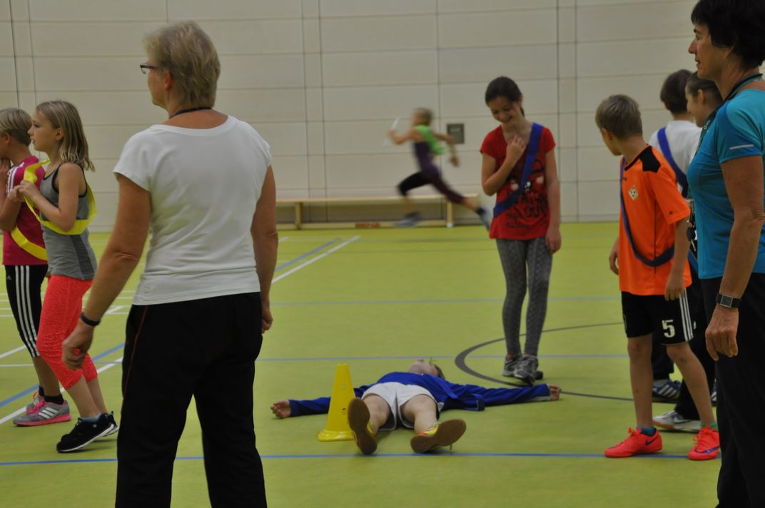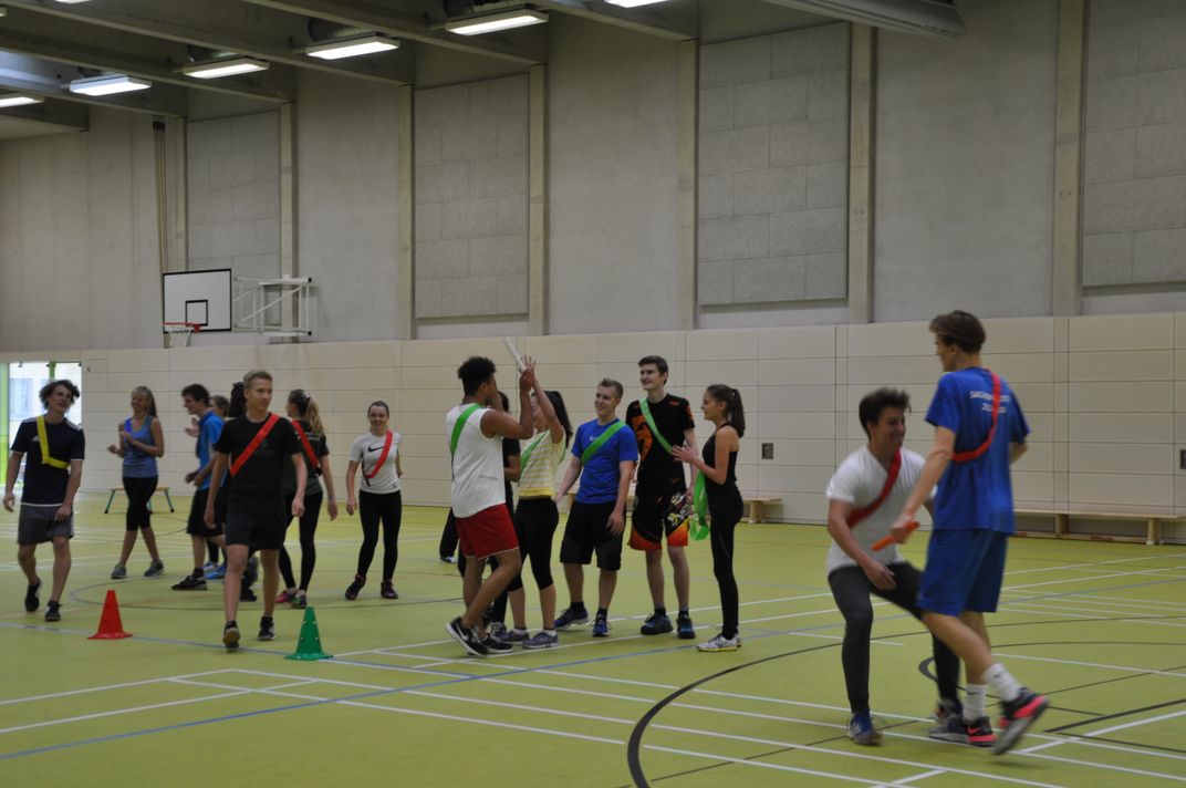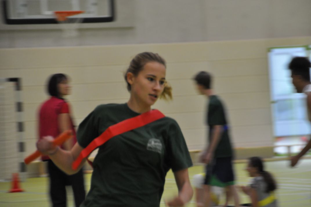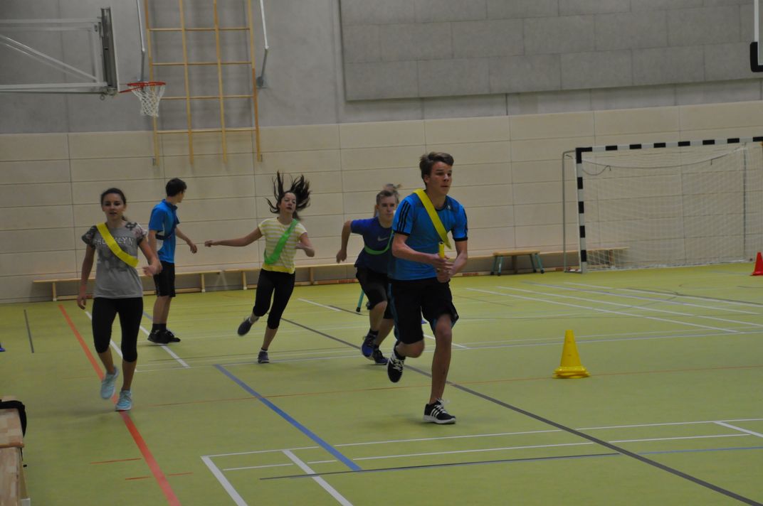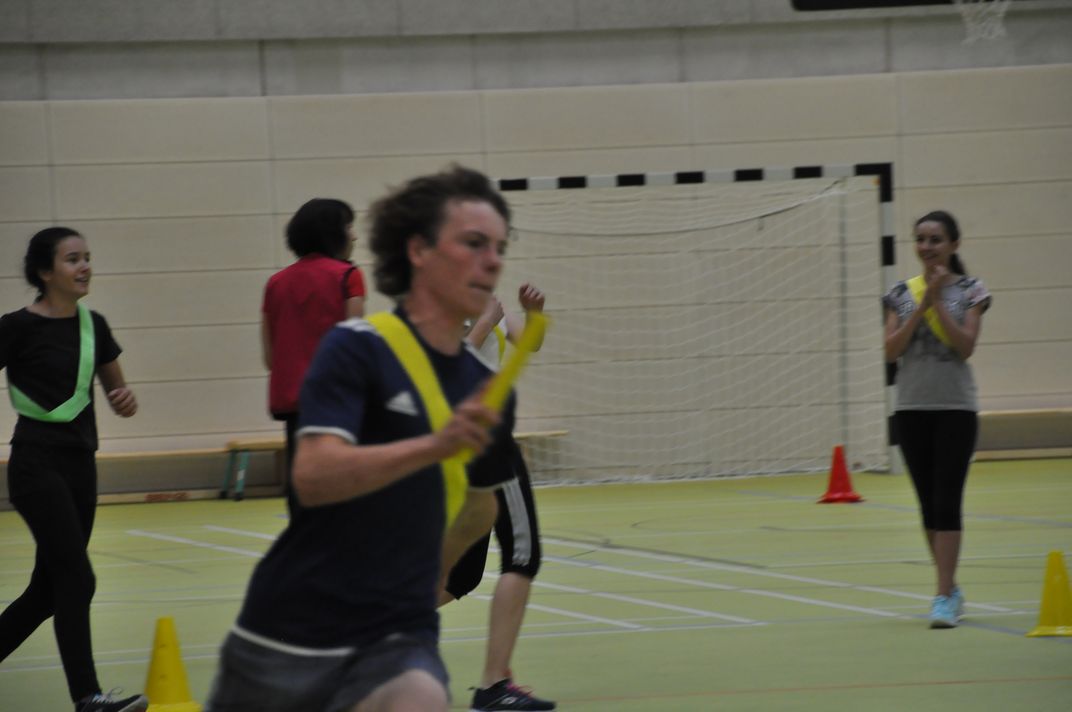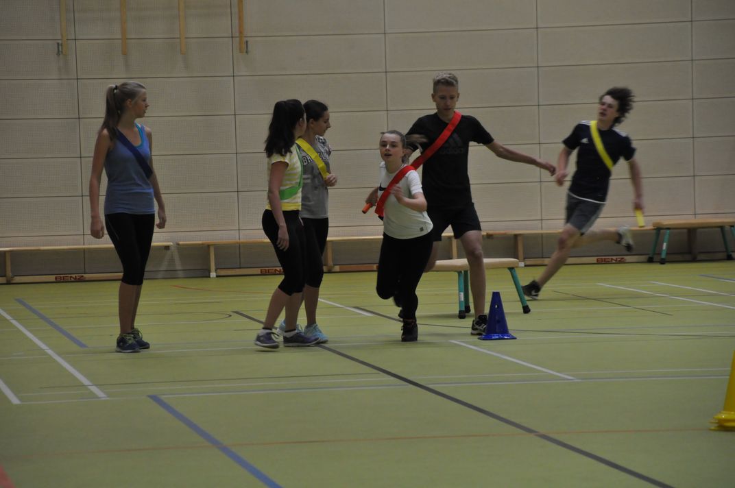 Doch dank der neuen Turnhalle, dem Organisationstalent der Sportlehrer und dem kurzfristigen Planungsvermögen Frau Pascholds konnten wenigstens die Highlights der Sportfeste – die Staffelläufe - in der Turnhalle stattfinden.