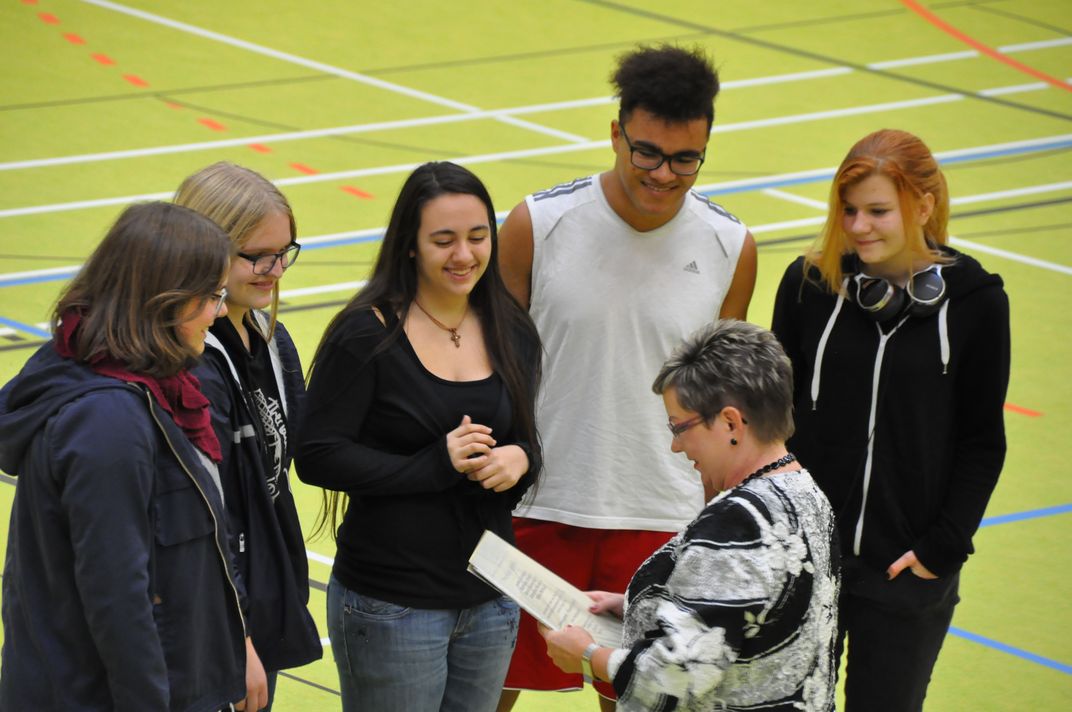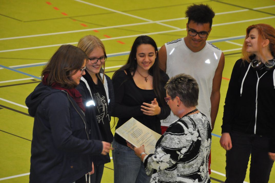 Bevor die 10. Klassen ihren Lauf begannen, konnte Frau Paschold noch einer freudigen Pflicht nachkommen und einige Teilnehmer der heutigen 10.Klassen für ihre erfolgreiche Teilnahme an einem Projekt des gesellschaftswissenschaftlichen Profils der vergangenen 9.Klasse auszeichnen. Herzlichen Glückwunsch auch dafür!